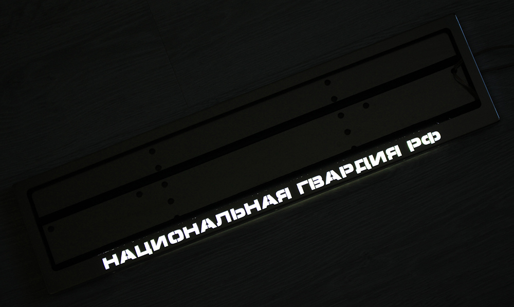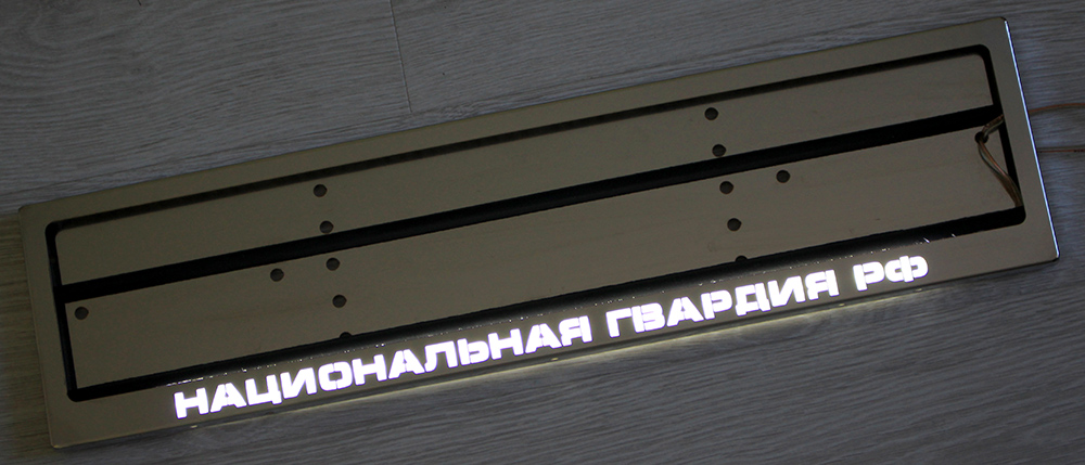 Светящаяся рамка номера НАЦИОНАЛЬНАЯ ГВАРДИЯ из нержавейки